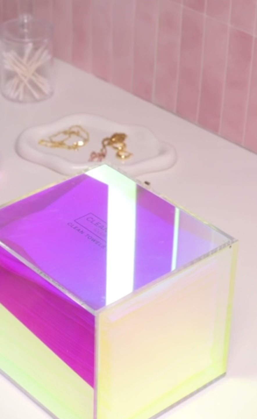 🌈 A bold, colorful box that keeps 50 Clean Towels XL right on your bathroom counter. It’s not just for storage—it makes your space fun and vibrant, plus it lights up your bathroom (literally!)